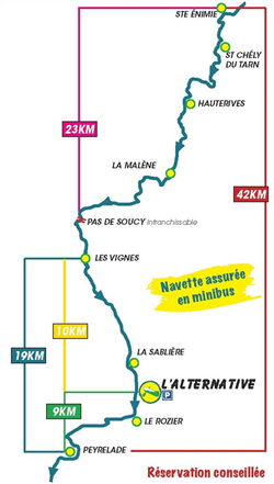 May we suggest that you navigate a short distance upstream on this very quiet part, so as to have a look at the "Pas de Soucy", an un-navigable chaos of rocks which splits the Gorges du Tarn in two.